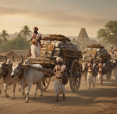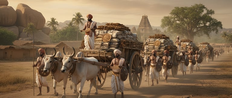 Mode: bullock-cart convoys were the normal method for overland transport of revenue consignments; for larger or more urgent transfers horses or elephants might be used. Convoys are described in traveller accounts and archaeological studies of Hampi’s routes. Open Library+1